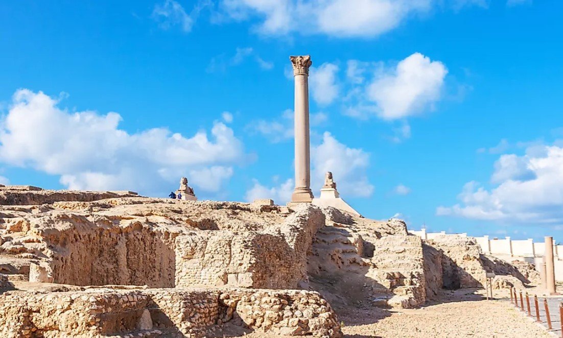 See the towering Roman triumphal column and the remains of the ancient Serapeum temple complex.